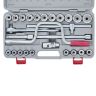 Головки 10, 11, 12, 13, 14, 15, 16, 17, 18, 19, 20, 21, 22, 23, 24, 25, 26, 27, 28, 30, 32 - 21 шт, Ключ трещотка - 1 шт, Вороток Т-образный - 1 шт, Удлинители 125, 250 - 2 шт, Шарнир - 1 шт, Коловорот - 1 шт, Кейс - 1 шт