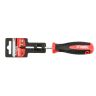 Отвертка Matrix «Profi» 11868, PZ1 х 75 мм, из стали S2, с двухкомпонентной рукояткой, служит для монтажа и демонтажа саморезов, винтов и др. крепежа типа Pozidriv. Крестовая отвертка с 4 дополнительными ребрами на шлице обеспечивает высокую точность работ и предотвращает проскальзывание шлица в головке крепежа. Профессиональная отвертка станет незаменимым помощником при осуществлении монтажных, строительных и ремонтных работ. Благодаря стержню длиной 75 мм можно закручивать и откручивать крепеж в углублениях.ПреимуществаТвердость и прочность обеспечивается высоким качеством материалов: стержень выполнен из стали CrV, а жало — из закаленной инструментальной стали S2.Рабочая часть фосфатирована, таким образом улучшается сцепление со шлицем крепежа.Намагниченное жало позволяет зафиксировать крепеж и освободить одну руку для удержания закрепляемой детали.Маркировка с рабочими параметрами на рукоятке отвертки обеспечивает удобство эксплуатации.Отвертка произведена на Тайване с высоким контролем качества, что гарантирует ее надежность и долговечность.Трехкомпонентная рукоятка со специальными насечками надежно лежит в руке.Рукоятка выполнена методом цельного литья, что позволяет добиться прочного сцепления с рабочей частью.