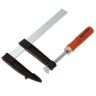 F-образная струбцина Sparta 204245, 150 x 80 x 210 мм, используется в столярном и слесарном деле и позволяет фиксировать заготовки из металла, древесины и других материалов для их соединения или обработки. Деталь помещают между губками, одна из которых подвижна и служит для регулировки величины захвата. Винтовой зажим позволяет прикладывать значительное усилие для надежной фиксации. Защитные накладки предотвращают повреждение детали. Элементы конструкции выдерживают высокую температуру, поэтому струбцина подходит для проведения сварочных работ, при этом пластиковые накладки необходимо снять.ПреимуществаШтанга изготовлена из стали, поэтому обладает повышенной устойчивостью к изгибанию и выдерживает значительные нагрузки.Оцинкованный винт устойчив к коррозии, что увеличивает срок службы инструмента.Удобная деревянная рукоятка надежно лежит в руке, что повышает комфортность работы.