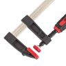 F-образная струбцина Matrix 20404 размером 250 х 50 х 310 мм используется для зажима металлических, деревянных и других заготовок для их последующей обработки или сборки. Представляет собой штангу, на которой установлено 2 кронштейна — неподвижный и подвижный. Деталь помещается между ними и прижимается к губкам при помощи винтового зажима с трапециевидной резьбой. Подвижный кронштейн позволяет регулировать величину захвата, которая может достигать 250 мм. Струбцину применяют для выполнения слесарных и столярных работ.ПреимуществаНадежность — стальная штанга выдерживает повышенные нагрузки и позволяет фиксировать заготовки со значительным усилием.Аккуратная работа — пластиковые накладки на губках предотвращают повреждение детали при сжатии.Возможность использования для сварочных работ — металлическая конструкция выдерживает высокую температуру (перед началом сварки необходимо снять пластиковые накладки с губок).Эргономичность — двухкомпонентная обрезиненная рукоятка с рельефным дизайном не выскальзывает из ладони.