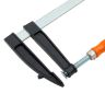 F-образная струбцина Sparta 204415, 500 х 120 х 570 мм, используется в столярном и слесарном деле и позволяет фиксировать заготовки из металла, древесины и других материалов для их соединения или обработки. Деталь помещают между губками, одна из которых подвижна и служит для регулировки величины захвата. Винтовой зажим позволяет прикладывать значительное усилие для надежности фиксации. Защитные накладки предотвращают повреждение детали. Элементы конструкции выдерживают высокую температуру, поэтому струбцина подходит для проведения сварочных работ, при этом пластиковые накладки необходимо снять.ПреимуществаШтанга изготовлена из стали, поэтому обладает повышенной устойчивостью к изгибанию и выдерживает значительные нагрузки.Оцинкованный винт устойчив к коррозии, что увеличивает срок службы инструмента.Удобная деревянная рукоятка надежно лежит в руке, что повышает комфортность работы.