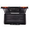 Усиленный ящик для инструментов Stels 90761 длиной 16"" используется для хранения и транспортировки ручного и электроинструмента, а также хозяйственных мелочей или рыболовных принадлежностей. Заменяет коробку для инструментов, а также может служить рыболовным ящиком. Пригодится дома, в поездке, а также в гараже или на даче.ПреимуществаНадежность — корпус из прочного пластика выдерживает распределенную нагрузку на крышку до 120 кг.Вместительность — контейнер рассчитан на размещение инструментов общей массой не более 20 кг, поэтому в него можно сложить много предметов.Упорядоченное хранение крепежа и мелких деталей — в крышке имеются специальные органайзеры, также в комплект поставки входит съемный лоток с ручкой.Устойчивость — опорные ножки предотвращают случайное опрокидывание ящика.Комфортное использование — замок легко открывается одной рукой, широкая ручка облегчает перемещение ящика.Безопасная транспортировка — ящик надежно запирается, риск случайного открывания исключен.
