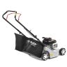 - Колеса увеличенного диаметра на подшипниках и эргономичная рукоятка облегчают перемещение косилки по газону
