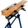 Незаменимый помощник в мастерской, в гараже и в домашних условиях. Предназначен для проведения столярных работ. Благодаря складному каркасу удобен в хранении и транспортировке. Столешница состоит из статической и подвижной части, фиксируемой двумя вращающимися ручками. Для удобства в работе столешница оснащена отверстиями и фиксаторами заготовок любой формы.